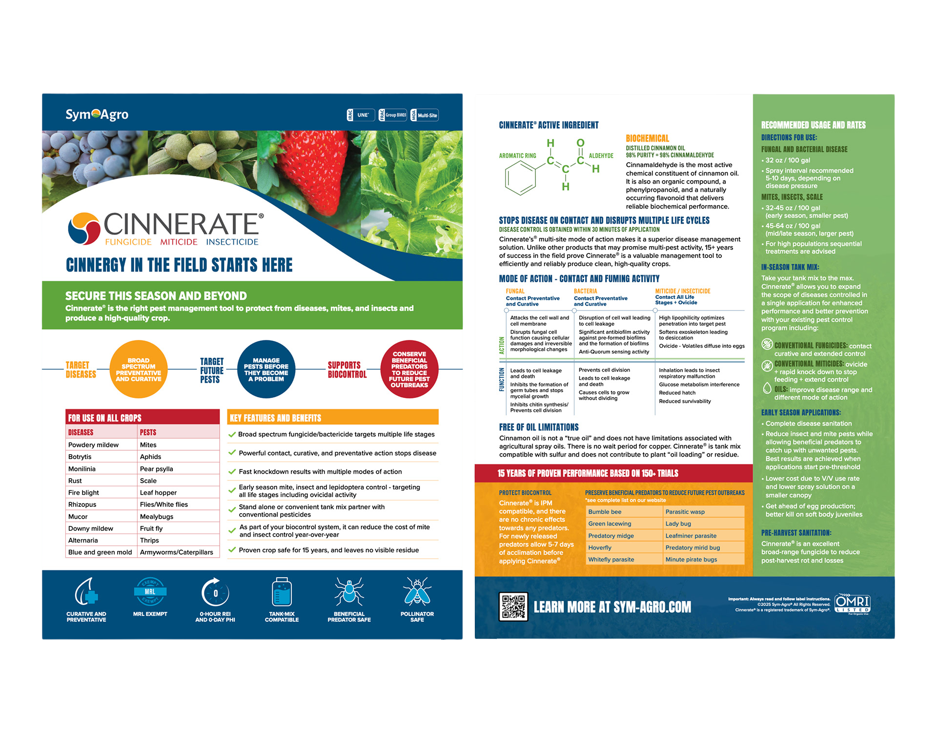 When Sym-Agro asked us to expand the reach of Cinnerate, we needed a creative solution that spoke to both conventional and organic growers. The challenge was shifting the perception of crop protection from a “quick fix” to long-term prevention without losing authenticity.